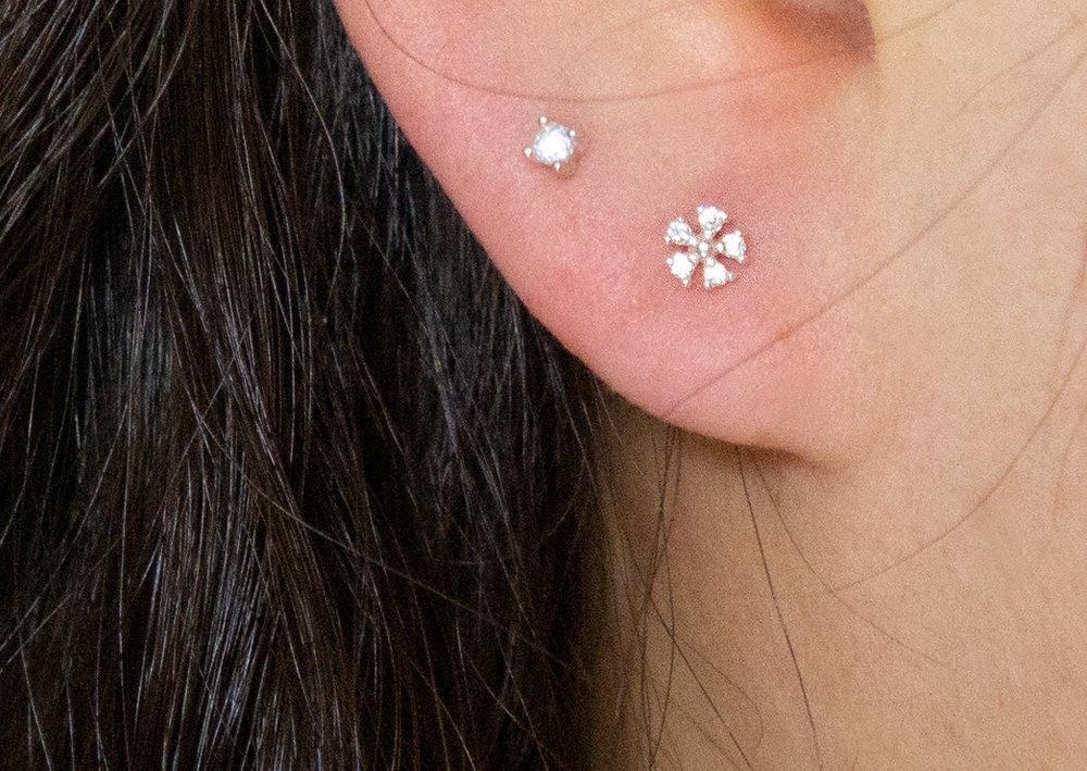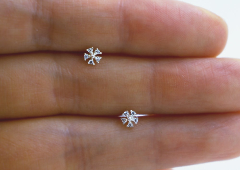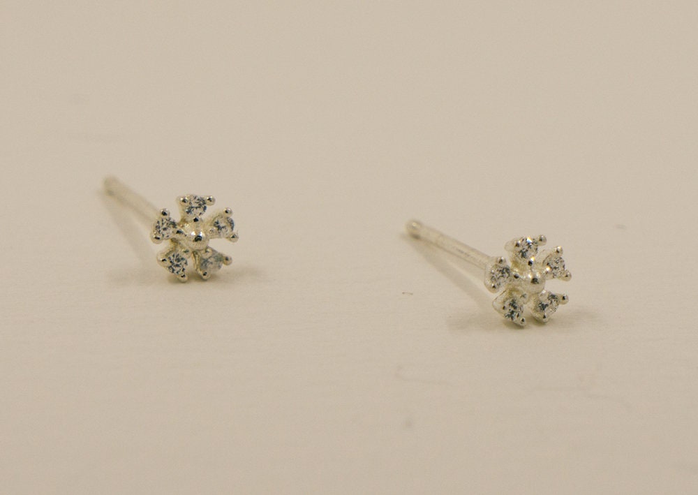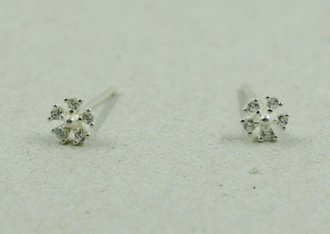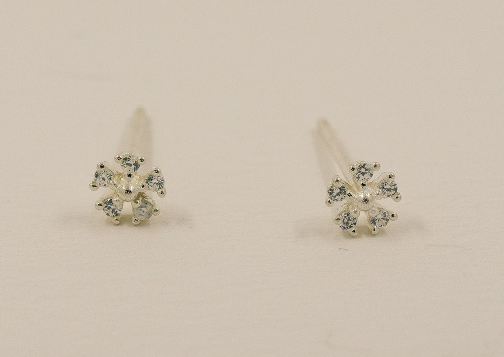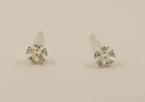 925 Sterling Silver, Mini CZ Studs Flower, Snow Flake Earrings - TSE004