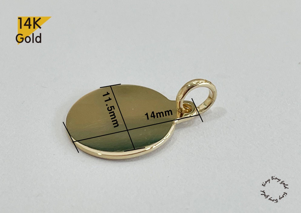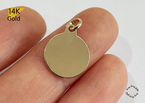 14K Solid Gold Engravable Disc Pendant, Mini Disc Pendant Size 12mm