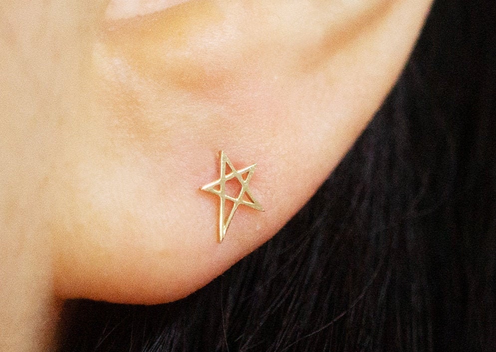 Star measures approx. 6.5 x 5 mm *Single Order : https://www.etsy.com/listing/1029009513/single-l-10k-solid-gold-star-earring?ref=shop_home_active_1&pro=1