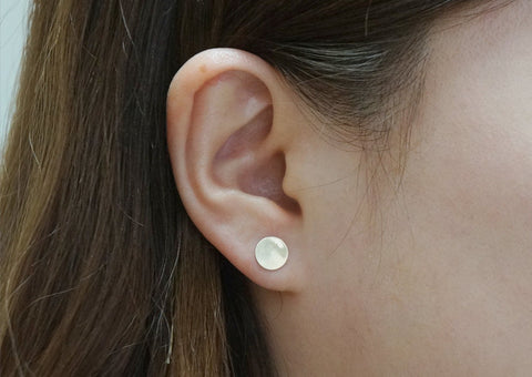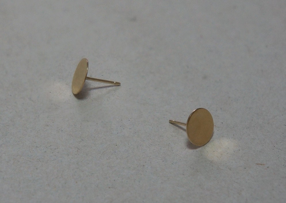 Circle measures approx. 8 x 8 mm Length / thickness of Post : 9 mm / 0.6 mm diameter of backs : 3mm(solid gold backs) / 5.5mm(covered gold backs)