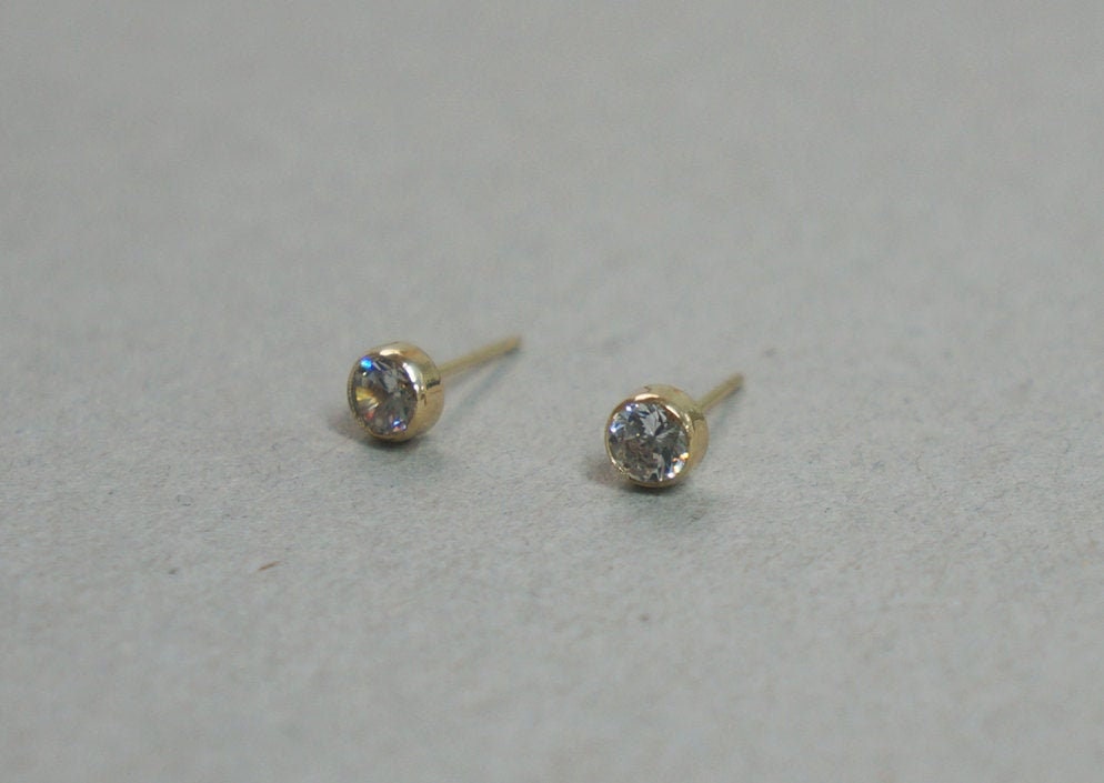 -Include : 1 pair of studs earrings & gold-backs(select option) / black paper package -Material : 10K solid Gold (not plating) -Circle CZ measures approx. 4.2 x 4.2mm -Length / thickness of Post : 9 mm / 0.6 mm -Diameter of backs : 3mm(solid gold backs) / 5.5mm(covered gold backs)