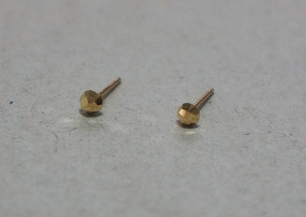 So happy with these tiny earrings! The facets make them sparkle. Delicate and interesting. I've had them in for a week straight and so far my sensitive ears are happy. Thank you!