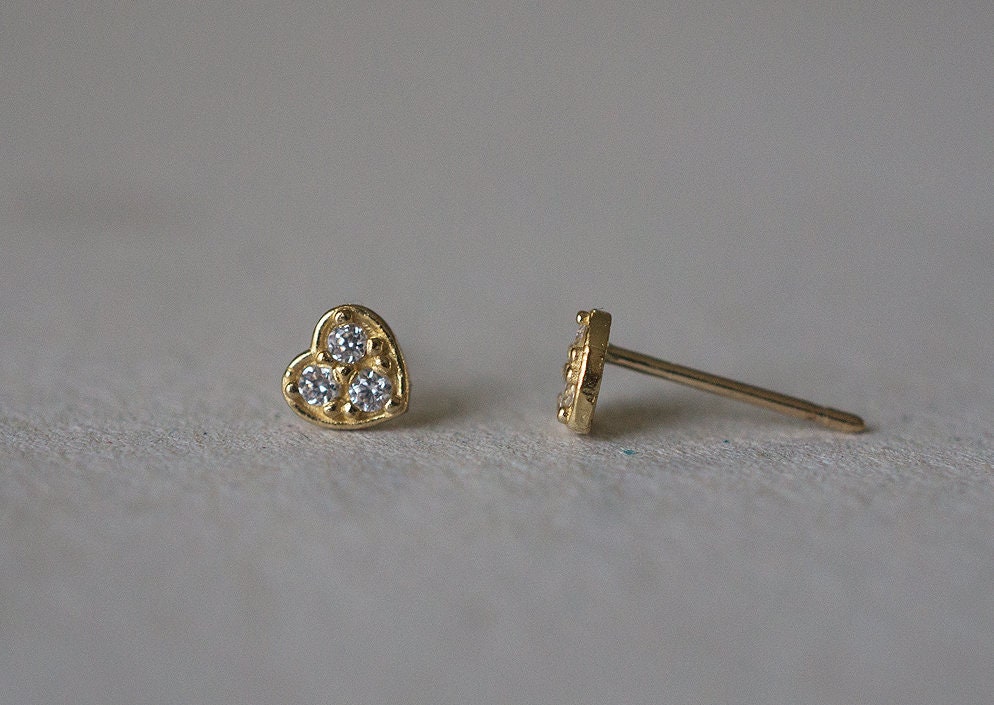 Material : 10K solid Gold (not plating), 3 Tiny White Cubic Zirconia