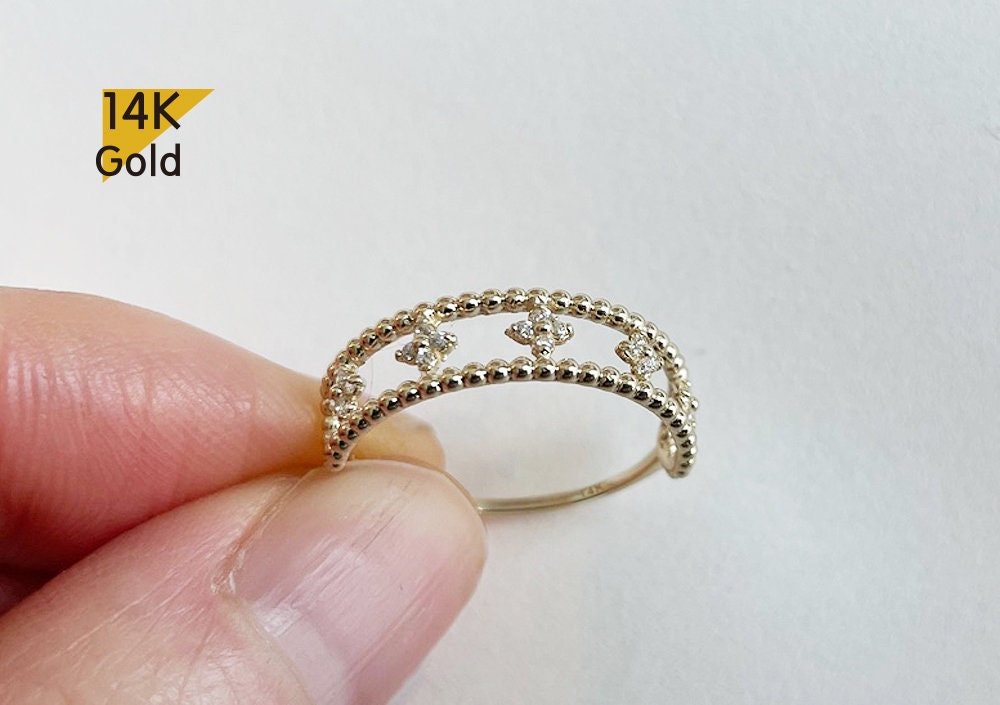 14K Gold Solid Gold Balls With White CZ Ring - TGR212