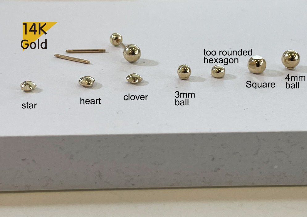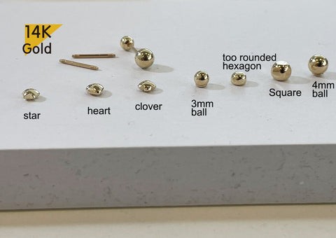 Barbell Ending Ball Type : Star / Heart / Clover / too rounded hexagon / Square / 3mm Ball / 4mm Ball