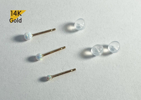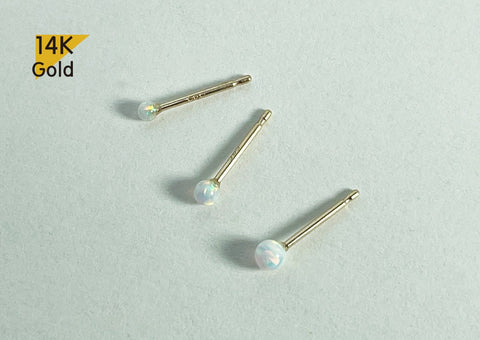 14K Solid Gold Opal Earring (Single), 1.9mm, 2.4mm, 3mm