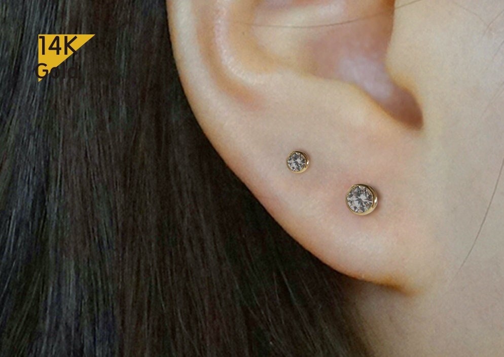 These are beautiful. I bought both the encased and prong earrings. There is not much difference in the appearance between the two. I thought they had made a mistake in my order. It is really up to the buyer which pair you purchase. Both earrings are sparkling and beautiful. The longer post works for my family. Shipping time was reasonable I would recommend.