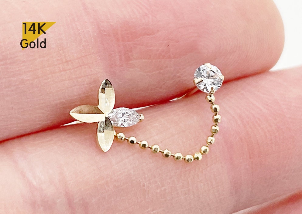 Material : 14K Solid Gold / Double stud earring ( 1 SINGLE)