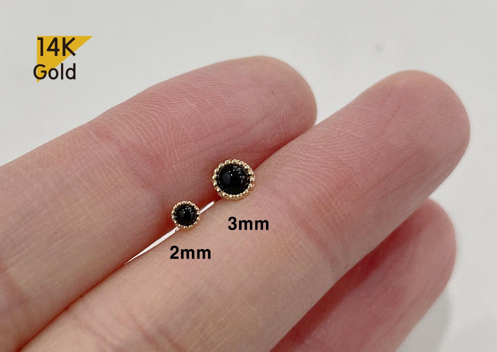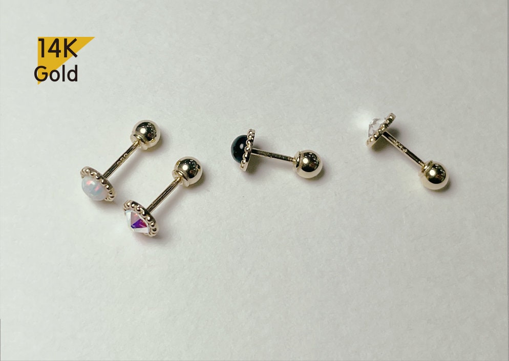 14K Solid Gold Cubic Zirconia, Onyx, Aurora Borealis, Opal 2,3 mm Piercing 21G