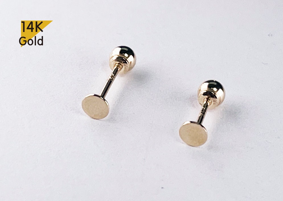 - Material : 14K Solid Gold - Circle measures approx. : 3, 4mm - Barbell Ending Ball Size : 3mm ( 4mm ending ball - contact us before you order ) - Bar Post Thickness : 0.7mm / 21gauge - Bar Post length : 4, 6, 8mm