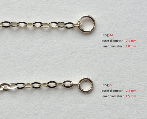 - Chain length : 0.75 inch / 1 inch / 1.5 inches / 2 inches / 3 inches - Ring-S : 0.4mm(thickness), 1.5mm(inner), 2.3mm(outer) - Ring-M : 0.45mm(thickness), 2mm(inner), 2.9mm(outer)